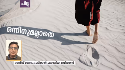 ചില്ല. മികച്ച എഴുത്തുകള്ക്ക് ഒരിടം. സൃഷ്ടികള് submissions@asianetnews.in എന്ന വിലാസത്തില് അയക്കൂ. ഒപ്പം ഫോട്ടോയും വിശദമായ വിലാസവും അയക്കണം. എഡിറ്റോറിയല് ബോര്ഡ് തെരഞ്ഞെടുക്കുന്ന സൃഷ്ടികള് പ്രസിദ്ധീകരിക്കും