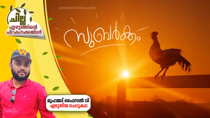 ചില്ല. മികച്ച എഴുത്തുകള്ക്ക് ഒരിടം. സൃഷ്ടികള് submissions@asianetnews.in എന്ന വിലാസത്തില് അയക്കൂ. ഒപ്പം ഫോട്ടോയും വിശദമായ വിലാസവും അയക്കണം. എഡിറ്റോറിയല് ബോര്ഡ് തെരഞ്ഞെടുക്കുന്ന സൃഷ്ടികള് പ്രസിദ്ധീകരിക്കും