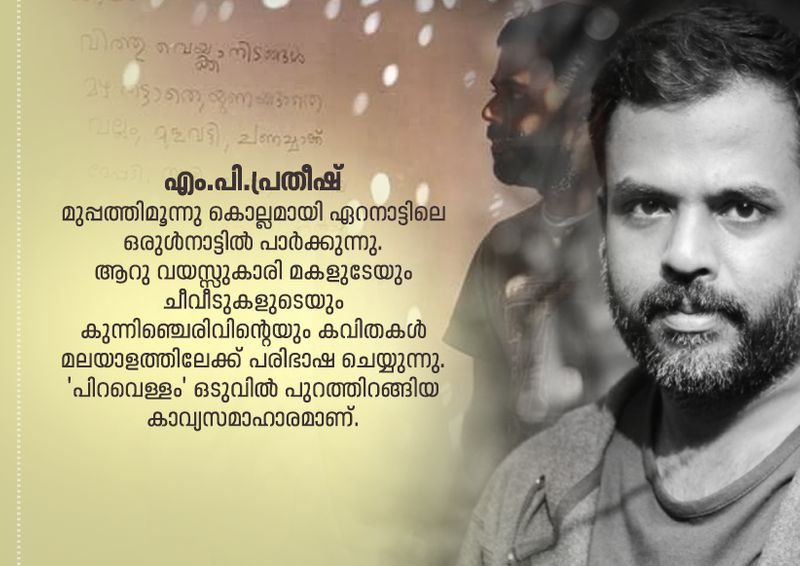 സമകാലീന മലയാള കവിതയിലെ ഏറ്റവും വ്യത്യസ്തമായ അടരുകളിലൊന്നാണ് എം പി പ്രതീഷിന്റെ കവിതകള്. അകമേ അതൊരാവാസ വ്യവസ്ഥ. പ്രകൃതിയെ, ഭൂമിയെ, ജീവനെ കവിതയുടെ സൂക്ഷ്മദര്ശിനികളിലൂടെ അടയാളപ്പെടുത്തുന്നു, ആ കവിതകള്. പുതിയ കാലത്തിന്റെ ആരവങ്ങളല്ല, ജീവിതാഘോഷങ്ങള്ക്കിടയില് ആരുടെയും കണ്ണുപതിയാതെ പോവുന്ന ഇടങ്ങളും അനുഭവങ്ങളുമാണ് പ്രതീഷിന്റെ കവിതകള് വിനിമയം ചെയ്യുന്നത്. ശാന്തമായ, സൗമ്യമായ കവിതയ്ക്കു മാത്രം ചെന്നെത്താനാവുന്ന ആഴമേറിയ ഒരനുഭവമാണത്. വന്യതയും വയലന്സും പോലും അവിടെ, അഴിച്ചെടുക്കുന്തോറും കുറുകുന്ന സൂക്ഷ്മതയാവുന്നു. വായനക്കാരുടെ ശ്രദ്ധയെ ആവോളം ആവശ്യപ്പെടുന്ന, ആവാഹിക്കുന്ന കവിതയുടെ വേറിട്ട ഇടം. സൂക്ഷ്മനിരീക്ഷണങ്ങള്, അസാദ്ധ്യമായ ആംഗിളുകളില്നിന്നുള്ള നോട്ടങ്ങള്, ആഖ്യാനത്തിന്റെ ഉപരിതലത്തിലേക്ക് ജീവിതത്തെ ഇഞ്ചിഞ്ചായി വിളിച്ചുവരുത്തുന്ന രചനാതന്ത്രങ്ങള്. പ്രതീഷിന്റെ കവിതകള് മലയാള കവിതയെ, എന്നോ അറ്റുപോയ ഒരു പൂമ്പാറ്റച്ചിറകനക്കത്തിലേക്ക് പ്രതിഷ്ഠിക്കുന്നു.