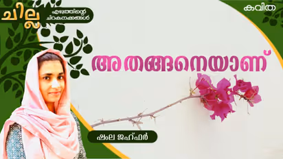 ചില്ല. മികച്ച എഴുത്തുകള്ക്ക് ഒരിടം. സൃഷ്ടികള് submissions@asianetnews.in എന്ന വിലാസത്തില് അയക്കൂ. ഒപ്പം ഫോട്ടോയും ഫോണ് നമ്പര് അടക്കം വിശദമായ വിലാസവും അയക്കണം. എഡിറ്റോറിയല് ബോര്ഡ് തെരഞ്ഞെടുക്കുന്ന സൃഷ്ടികള് പ്രസിദ്ധീകരിക്കും