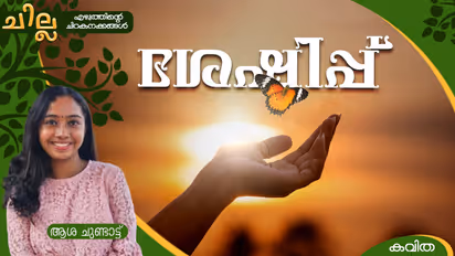 ചില്ല. മികച്ച എഴുത്തുകള്ക്ക് ഒരിടം. സൃഷ്ടികള് submissions@asianetnews.in എന്ന വിലാസത്തില് അയക്കൂ. ഒപ്പം ഫോട്ടോയും ഫോണ് നമ്പര് അടക്കം വിശദമായ വിലാസവും അയക്കണം. എഡിറ്റോറിയല് ബോര്ഡ് തെരഞ്ഞെടുക്കുന്ന സൃഷ്ടികള് പ്രസിദ്ധീകരിക്കും