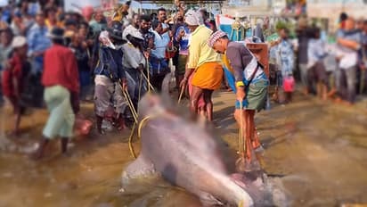 വള്ളത്തിലുണ്ടായിരുന്ന അഞ്ച് പേർ ചേർന്ന് ഇറക്കാൻ ശ്രമിച്ചെങ്കിലും നടക്കാതെ വന്നതോടെ തീരത്തുണ്ടായിരുന്ന മറ്റ് മത്സ്യത്തൊഴിലാളികളും ചേർന്നാണ് വള്ളത്തിൽ നിന്നും സ്രാവിനെ കരയിലേക്കെത്തിക്കാനായത്. കരയിലെത്തിച്ചിട്ടും ഉയർത്തിക്കൊണ്ടുപോകാനാകാതെ വന്നതോടെ കടൽ വെള്ളത്തിലേക്ക് മറിച്ചിട്ട് പ്ലാസ്റ്റിക് കയറുകൾ കെട്ടി വലിച്ചാണ് കരയിലേക്ക് മാറ്റിയത്. നാൽപ്പതിനായിരം രൂപയിൽ തുടങ്ങിയ ലേലം വിളി എൺപതിനായിരത്തോളം രൂപയിലെത്തിയാണ് അവസാനിച്ചതെന്ന് മത്സ്യത്തൊഴിലാളികൾ പറയുന്നു. 79,400 രൂപ വരെ മത്സരിച്ച് ലേലം വിളി നടന്നു.
