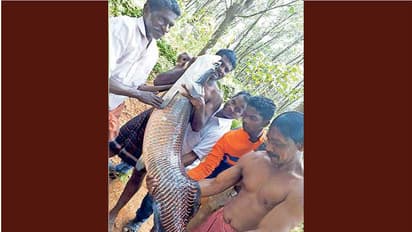 മുട്ടം: ഇടുക്കിയില് ചൂണ്ടയില് കുടുങ്ങിയ മത്സ്യം അത്ഭുതമായി. 58 കിലോ തൂക്കമുള്ള മത്സ്യമാണ് ഇടുക്കി മുട്ടം പെരുമുറ്റത്ത് ചൂണ്ടയില് കുടുങ്ങിയത്. അരപൈമ എന്ന മത്സ്യമാണ് ചൂണ്ടയില് കുടുങ്ങിയത്. ഈ മത്സ്യം പൊതുവേ അലങ്കാര മത്സ്യമായി കണക്കാക്കുന്നവയാണ് ചിലപ്പോള് ഇവയ്ക്ക് 250 കിലോ വരെ തൂക്കം ഉണ്ടാകാറുണ്ട്. എന്തായാലും വൈകീട്ട് നാലോടെ ജോമോന്, അജീഷ്, സജി എന്നിവര് ചൂണ്ടയെറിഞ്ഞപ്പോള് കുടുങ്ങിയ മത്സ്യത്തെ മീനെ കാണുവാന് എത്തിയവര്ക്ക് വീതിച്ച് നല്കി.