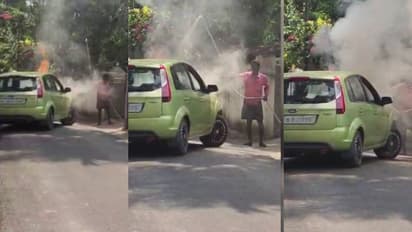 വാഹനത്തിന്റെ മുൻവശം പൂർണമായും കത്തിനശിച്ചു. തീ ഉയരുന്നത് കണ്ട് പ്രദേശവാസികൾ വീടുകളിൽനിന്ന് വെള്ളം ഉപയോഗിച്ച് തീ അണയ്ക്കുകയായിരുന്നു. സമീപത്തെ വീട്ടിൽ നിന്ന് പൈപ്പിലൂടെ വെള്ളം അടിച്ചാണ് തീയണച്ചത്. കാറിൽ നിന്ന് വലിയ രീതിയിൽ പുകയും ഉയര്ന്നു.