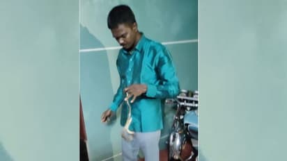 വൈകിട്ട് മൂന്നരയോടെ മകൻ അഖിൽ ജിമ്മിൽ പോകുവാനായി ബുളളറ്റിലേക്ക് കയറുമ്പോളാണ് തറയിൽ കിടന്നിരുന്ന പാമ്പ് പത്തിവിടർത്തി കൊത്താനാഞ്ഞത്. വണ്ടിയിൽ നിന്ന് ചാടിയിറങ്ങിയാണ് കടിയേൽക്കാതെ അഖിൽ രക്ഷപ്പെട്ടത്. ഇതിനിടെ പാമ്പ് കവറ് മൂടിയിരുന്ന ബൈക്കിലേക്ക് കയറി.