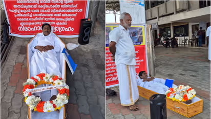 കോട്ടയം: പാലാ പൊൻകുന്നം പാലത്തിനടിയിലെ അനധികൃത കൈയേറ്റം ഒഴിപ്പിക്കാൻ ശ്രമിക്കാത്ത നഗരസഭ അധികാരികളുടെ നടപടിയിൽ പ്രതിഷേധിച്ച് നഗരസഭ ഓഫീസിന് മുമ്പിൽ പരാതിക്കാരനായ അജി മർക്കോസ് ശവപ്പെട്ടിയിൽ കിടന്ന് നിരാഹാര സത്യാഗ്രഹം ആരംഭിച്ചു. പൊതുപ്രവർത്തകൻ ജോയ് കളരിക്കൽ പ്രതിഷേധ സമരം ഉദ്ഘാടനം ചെയ്തു. നഗരസഭയിൽ നിന്നും വിരമിക്കുന്ന ജീവനക്കാർക്ക് നൽകിയിരുന്ന ലൈസൻസ് അനധികൃതമായി കൈക്കലാക്കി മറ്റൊരു സ്വകാര്യ വ്യക്തി ഇവിടെ കെട്ടിടം പണിയുകയും വാടകയ്ക്ക് നൽകുകയും ചെയ്തിരുന്നു. ഇതിനെതിരെയാണ് അജി മാർക്കോസ് നഗരസഭയിൽ പരാതി നൽകിയത്. തുടർന്ന് ഹൈക്കോടതിയും സമീപിച്ചു. കോടതി നോട്ടീസ് ലഭിച്ചതിനെ തുടർന്ന് നഗരസഭ ലൈസൻസ് സസ്പെൻഡ് ചെയ്തെങ്കിലും കെട്ടിടം പൊളിച്ചുമാറ്റാൻ തയ്യാറായില്ല.