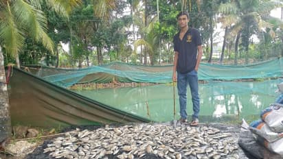 രണ്ട് മാസം പ്രായമായ 3500 കരിമീൻ കുഞ്ഞുങ്ങളോളമാണ് കുളത്തിൽ ഉണ്ടായിരുന്നത്. വിളവെടുപ്പിന് തയ്യാറായിരിക്കുമ്പോഴാണ് കുളത്തിൽ വിഷം കലക്കുന്നത്. അഞ്ച് ലക്ഷത്തോളം രൂപയുടെ നഷ്ടം ഉണ്ടായതായിട്ടാണ് കണക്കാക്കുന്നത്. സംഭവത്തില് ഷാരോൺ പൊലീസിലും ഫിഷറീസ് ഡിപ്പാർട്ട്മെന്റിലും പരാതി നൽകി.