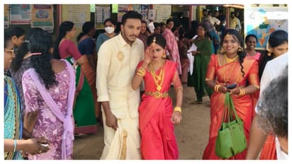 തൃശൂര്: വരന് മിന്നു ചാര്ത്തിയതിനു പിന്നാലെ നവവധു പോയത് പോളിങ് ബൂത്തിലേക്ക്. തളിക്കുളം പുളിയംതുരുത്ത് കാര്യാട്ട് സുകുമാരന്റേയും ബിന്ദുവിന്റേയും മകള് നന്ദനയുടെ വിവാഹ ദിനത്തിലായിരുന്നു പോളിങ്. ചെന്ത്രാപ്പിന്നി കല്ലേപ്പറമ്പില് ലിജീഷ് ആണ് വരന്. കുടുംബ ക്ഷേത്രത്തില് രാവിലെ നടന്ന താലികെട്ടിനു ശേഷം പങ്കാളിയോടൊപ്പം വിവാഹ വേഷത്തില് തന്നെ പത്താം കല്ല് സി.എം.എസ്. യു.പി. സ്കൂളിലെ 8ാം നമ്പര് ബൂത്തിലെത്തി വോട്ട് ചെയ്ത് മടങ്ങുകയായിരുന്നു നന്ദന.