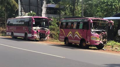 കാസർകോട്ട് നിന്ന് കോട്ടയത്തേക്ക് പോവുകയായിരുന്ന സ്വകാര്യ ബസ്സും കാസർക്കോട് നിന്ന് തിരുവനന്തപുരത്തേക്ക് വിനോദയാത്ര പോയി തിരിച്ച് നാട്ടിലേക്ക് മടങ്ങുകയായിരുന്ന മിനി ടൂറിസ്റ്റു ബസ്സുമാണ് കൂട്ടിയിടിച്ചത്.