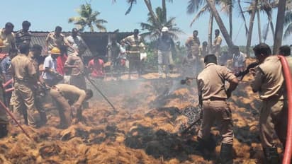 ഏഴോളം കയർ സംഘങ്ങളുടേതാണ് ചകിരി. സമീപത്തുള്ള വൈദ്യുത ലൈനിലെ ഷോർട്ട് സർക്ക്യൂട്ടാണ് അപകടകാരണമെന്നാണ് വിലയിരുത്തൽ. 10 ലക്ഷം രൂപയ്ക്ക് മുകളിൽ ന്നു ഷോട്ട് സർക്യൂട്ട് ആണ് എന്ന് കരുതുന്നു.