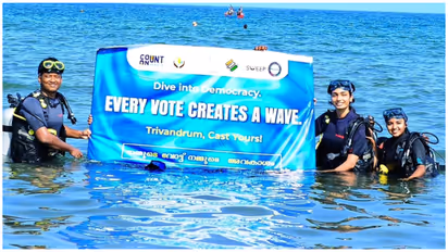 വോട്ടിംഗിന്റെ ശക്തി ഓരോ വോട്ടറും തിരിച്ചറിയണമെന്നും ഏപ്രിൽ ഒൻപതിന് എല്ലാവരും പോളിംഗ് സ്റ്റേഷനിലെത്തി സമ്മതിദാനാവകാശം വിനിയോഗിക്കണമെന്നും കളക്ടർ അഭ്യർത്ഥിച്ചു. കഴിഞ്ഞ ദിവസം സ്വീപ്പിന്റെ ഭാഗമായി വിഴിഞ്ഞത്ത് സംഘടിപ്പിച്ച സ്കൂബാ ഡൈവിംഗും ശ്രദ്ധേയമായിരുന്നു. സ്വീപ്പ് ജില്ലാ കോർഡിനേറ്ററും അസിസ്റ്റന്റ് കളക്ടറുമായ ഡോ ശിവശക്തിവേൽ സി, വർക്കല റിട്ടേണിംഗ് ഓഫീസർ കബനി സി, സ്വീപ്പ് അംഗങ്ങൾ തുടങ്ങിയവർ സംബന്ധിച്ചു.