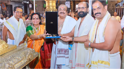 തൃശൂര്: ഗുരുവായൂരപ്പന് കാണിക്കയായി 12 പവനിലേറെ തൂക്കം വരുന്ന രണ്ട് സ്വര്ണ മാലകള് സമ്മാനിച്ച് ഭക്തർ. ഗുരുവായൂര് കാരക്കാട്ട് റോഡ് ശ്രീനിധി ഇല്ലത്ത് എ ശിവകുമാറും ഭാര്യയുമാണ് കണ്ണന് സ്വര്ണ മാലകള് സമര്പ്പിച്ചത്. മുത്തുകള് ചേര്ത്ത് ലക്ഷ്മീദേവിയുടെ രൂപം ആലേഖനം ചെയ്ത ലോക്കറ്റോടു കൂടിയ 57 ഗ്രാമിന്റെ സ്വര്ണ്ണമാലയും ഗണപതി രൂപം മുദ്രണം ചെയ്ത ലോക്കറ്റോടു കൂടിയ 41 ഗ്രാമിന്റെ മറ്റൊരു മാലയുമാണ് സമര്പ്പിച്ചത്. ക്ഷേത്രം ഉദ്യോഗസ്ഥരായ പ്രമോദ് കളരിക്കല്, എ. പ്രവീണ് എന്നിവര് വഴിപാടുകാരില് നിന്നും മാലകള് ഏറ്റുവാങ്ങി രശീത് നല്കി. നേരത്തെ വജ്ര കിരീടവും സ്വര്ണമാലകളും ശിവകുമാര് ഗുരുവായൂരപ്പന് സമര്പ്പിച്ചിട്ടുണ്ട്.
