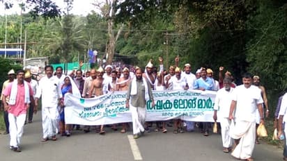 കല്പ്പറ്റ: കൊല്ലഗല്-കോഴിക്കോട് ദേശീയപാത (ദേശീയപാത 766) സ്ഥിരമായി അടച്ചിടാനുള്ള കേന്ദ്ര നീക്കത്തില് പ്രതിഷേധിച്ച് കര്ഷകര് ലോങ് മാര്ച്ച് നടത്തി. ആറ് ദിവസമായി നിരാഹാര സമരവുമായി വ്യാപാരികളും നാട്ടുകാരും സുല്ത്താന് ബത്തേരിയില് പ്രതിഷേധം സംഘടിപ്പിക്കുകയാണ്. ഇതിനോട് ഐക്യദാര്ഢ്യം പ്രഖ്യാപിച്ചാണ് രാവിലെ ബത്തേരിയില് നിന്നും 20 കിലോ മീറ്ററോളം താണ്ടി കര്ണാടക വനാതിര്ത്തിയിലേക്ക് മാര്ച്ച് സംഘടിപ്പിച്ചത്.