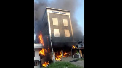 തിങ്കളാഴ്ച വൈകിട്ട് അഞ്ച് മണിയോടെയാണ് ആക്രി സാധനങ്ങൾ സൂക്ഷിക്കുന്ന ഗ്രൗണ്ട് ഫ്ലോറിൽ നിന്ന് തീ കണ്ടത്. ആദ്യം കറുത്ത പുകയാണ് പുറത്ത് കണ്ടത്. നിമിഷനേരം കൊണ്ട് അത് തീഗോളമായി മാറുകയായിരുന്നു. താഴെ സൂക്ഷിച്ചിരുന്ന ആക്രി സാധനങ്ങളും ലോഡ്ജിന്റെ ഓഫീസ് മുറിയിൽ സൂക്ഷിച്ചിരുന്ന കമ്പ്യൂട്ടറും പ്രിന്ററും അനുബന്ധ ഉപകരണങ്ങളും കത്തിനശിച്ചു.