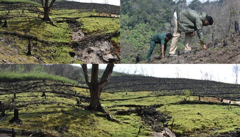 മരതൈകള് നടുന്നതിനൊപ്പം മൊട്ടക്കുന്നുകളില് മണ്ണില് ഈര്പ്പം നിലനിര്ത്താന് കഴിയുന്ന പുല്ലുകളും വച്ചുപിടിപ്പിക്കുന്നുണ്ട്. ഇവ വളരെ പെട്ടന്ന് പടര്ന്നുപിടിച്ച് പച്ചപ്പായി മാറുമെന്നാണ് വനം വകുപ്പിന്റെ വാദം. ചുരുങ്ങിയ വര്ഷങ്ങള്ക്കുള്ളില് മേഖല സ്വാഭാവിക വനമായി മാറുമെന്നാണ് ഇവരുടെ പ്രതീക്ഷ. ഇതിനൊപ്പം കത്തി നശിച്ച മറ്റ് മേഖലയിലും സമാനമായ പ്രവര്ത്തനം തുടരുമെന്നും അധികൃതര് പറഞ്ഞു.