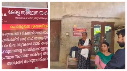 കൊല്ലം: പശു വളർത്താൻ ബാങ്കിൽ നിന്ന് വായ്പയെടുത്ത കുടുംബത്തെ തിരിച്ചടവ് മുടങ്ങിയതിനെ തുടർന്ന് പുറത്താക്കിയശേഷം വീടും പറമ്പും ജപ്തി ചെയ്ത് കേരള ബാങ്കിന്റെ നടപടി. പെരുവഴിയിലായ വീട്ടുകാരെ പൂട്ട് പൊളിച്ച് തിരികെ താമസിപ്പിച്ച് ഇടത് യുവജന പ്രസ്ഥാനമായ എ.ഐ വൈ എഫ് പ്രവർത്തകർ. അഞ്ചൽ പഞ്ചായത്തിലെ കാച്ചാണിയിലാണ് കേരള ബാങ്കിന്റെ നടപടി. 2018 ലാണ് പശുവളർത്തുന്നതിന്
