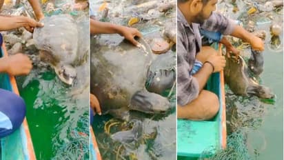 കഴിഞ്ഞ കുറച്ച് ദിവസങ്ങളായി കേരളത്തിന്റെ തീരത്ത് കാര്യമായ കോളുകളൊന്നും ലഭ്യമായിരുന്നില്ല. മത്സ്യബന്ധനത്തിന് പോയ വള്ളക്കാര്ക്ക് നിരാശയായിരുന്നു ഫലം. അതിനിടെയാണ് ഇന്ന് താനൂരില് നിന്നും മത്സ്യബന്ധനത്തിന് പോയ വള്ളക്കാര്ക്ക് ഒരു കടലാമയുടെ ജീവന് രക്ഷിക്കാന് കഴിഞ്ഞത്. കേരളത്തിന്റെ സൈന്യം എന്ന് വാട്സാപ്പ് ഗ്രൂപ്പിലാണ് ആമയെ രക്ഷപ്പെടുത്തുന്ന വീഡിയോ ആദ്യമായി വന്നത്.