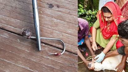 ആരോ മീന്പിടിക്കാനായി ഇറച്ചി കോഴിയുടെ അവശിഷ്ടത്തില് വലിയ ചൂണ്ട തിരുകിയിരുന്നു. ചൊവ്വാഴ്ച രാത്രി ഈ അവശിഷ്ടം കഴിക്കുന്നതിനിടയിലാണ് നായയുടെ വായില് ചൂണ്ട കുടുങ്ങിയത്. ചൂണ്ട വായില് കൊളുത്തിയതോടെ ആഹാരം കഴിക്കാനാകാതെയായി.