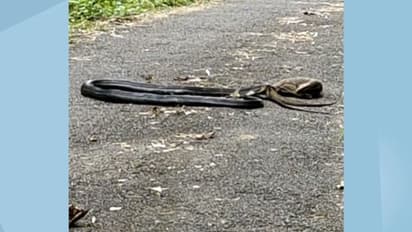 ഒടുവിൽ പാമ്പിനെ ഉപേക്ഷിച്ച് ഉടുമ്പ് ഓടി രക്ഷപ്പെട്ടു. പരിക്കേറ്റ രാജവെമ്പാലയും വനത്തിലേക്ക് ഇഴഞ്ഞുപോയി. കഴിഞ്ഞ ദിവസം വനാതിർത്തിയോട് ചേർന്ന കോട്ടപ്പടി വാവേലി ഭാഗത്ത് ഇറങ്ങിയ മറ്റൊരു രാജവെമ്പാലയെ വനപാലകർ പിടികൂടി വനത്തിലേക്ക് തിരിച്ചയച്ചിരുന്നു.