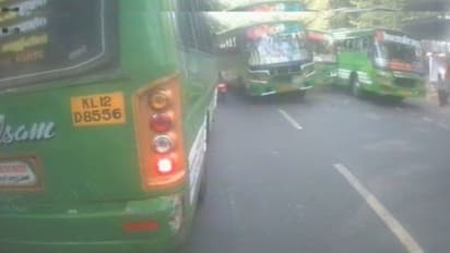 മെഡിക്കല് കോളേജ് റൂട്ടില് സര്വീസ് നടത്തുന്ന കീര്ത്തനം, ചന്ദ്രാസ് ബസുകളിലാണ് ഗ്രീന്സ് ബസ് ഇടിപ്പിച്ചത്. രാവിലെ 10.30ഓടെ കോഴിക്കോട് മാനാഞ്ചിറയിലാണ് അതിക്രമം നടന്നത്. സംഭവത്തില് ആര്ക്കും പരിക്കേറ്റിട്ടില്ലെങ്കിലും ഇതിന്റെ ഭയാനകമായ ദൃശ്യങ്ങള് പുറത്തുവന്നു. അതേസമയം ബസിന്റെ വില്പനയുമായി ബന്ധപ്പെട്ട തര്ക്കമാണ് സംഭവത്തിന് പിന്നിലെന്നാണ് ജീവനക്കാരുടെയും ഉടമയുടെയും വാദം. സംഭവസമയത്ത് ട്രാഫിക് പോലീസ് സ്ഥലത്തുണ്ടായിട്ടും ആവശ്യമായ നടപടികള് സ്വീകരിച്ചില്ലെന്ന ആരോപണം ഉയര്ന്നിട്ടുണ്ട്. ദൃശ്യങ്ങള് പ്രചരിച്ചതോടെ സംഭവത്തെക്കുറിച്ച് മോട്ടോര്വാഹന വകുപ്പും പോലീസും അന്വേഷണം ആരംഭിച്ചിട്ടുണ്ട്.