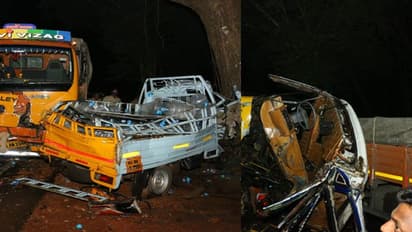 മിനി വാനിൽ മീൻ ലോറി ഇടിച്ചപ്പോൾ ഇതിനിടയിലേക്ക് മറ്റൊരു ലോറി ഇടിച്ച് കയറിയാണ് അപകടമുണ്ടായത്. വാഹനങ്ങൾ പൊളിച്ചാണ് പരിക്കേറ്റവരെ പുറത്തിറക്കിയത്.