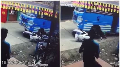 കോഴിക്കോട്: പുതുപ്പാടി ഈങ്ങാപ്പുഴ ബസ് സ്റ്റാന്റിൽ സ്വകാര്യ ബസ് നിർത്തിയിട്ട ബൈക്കുകൾക്കിടയിലേക്ക് ഓടിക്കയറി. ബസിന്റെ ടയറിനുള്ളിൽ അകപ്പെട്ട ഒരാൾ അത്ഭുതകരമായി രക്ഷപ്പെട്ടു.