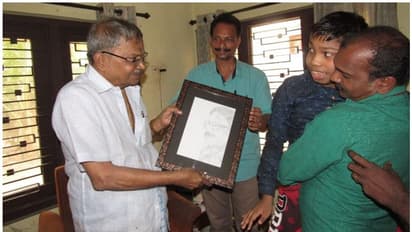 കോഴിക്കോട്: ഏറെ ആഗ്രഹിച്ച നവീന്റെ സ്വപ്നം അങ്ങനെ യാഥാര്ത്ഥ്യമായി. എം ടി വാസുദേവന് നായരുടെ കയ്യിലേക്ക് ആ ചെറിയ മനോഹര ചിത്രം നല്കിയപ്പോള് നവീനും എം ടിക്കും സന്തോഷം. പേരാമ്പ്ര കല്പത്തൂര് എ യു പി സ്കൂള് വിദ്യാര്ത്ഥിയായ നവീന് ജന്മനാ അരയ്ക്ക് താഴേക്ക് സ്വാധീനമില്ലാത്ത കുട്ടിയാണ്. എന്നാല് വീല്ചെയറൊന്നും നവീന് തന്റെ ചിത്രവരയ്ക്ക് തടസമല്ല. വീല്ചെയറിലിരുന്നും നവീന് മനോഹര ചിത്രങ്ങള് വരയ്ക്കും.