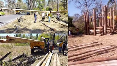 കൂടിന്റെ വലിയ തൂണുകളായിരിക്കും നേരത്തെ സ്ഥാപിക്കുക. നല്ല ഉറപ്പോടെ നില്ക്കേണ്ടതിനാല് കുറ്റമറ്റ രീതിയിലായിരിക്കും ഇവ മണ്ണില് കുഴിച്ചിടുക. കാലുകള് സ്ഥാപിച്ചതോടെ ഇന്നലെയും ഇന്നുമായി 65 കഴകള് (കുറുകെ വെക്കുന്ന മരത്തടികള്) എത്തിച്ച് കൂടിന്റെ പണി പൂര്ത്തിയാക്കുകയായിരുന്നു. വലിയ യൂക്കാലിപ്റ്റസ് മരങ്ങള് യന്ത്ര സഹായത്തോടെയാണ് തൂണുകള്ക്കിടയിലേക്ക് തള്ളിക്കയറ്റുന്നത്.