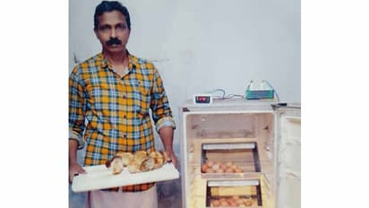 കാസർകോട് : കാഞ്ഞങ്ങാട് ചിരക്കരയിലെ താഴത്ത് വീട്ടിൽ പ്രഭാകരന് വീട്ടിലെ ഫ്രിഡ്ജ് കോഴിമുട്ട കേടാകാതെ സൂക്ഷിക്കാൻ മാത്രമുള്ളതല്ല. കോഴികുഞ്ഞിനെ വിരിയിക്കാൻ കൂടിയുള്ളതാണ്. ഫ്രിഡ്ജിൽ രൂപപ്പെടുത്തിയെടുത്ത ഇൻക്യുബേറ്ററിലാണ് പ്രഭാകരൻ 50 നാടൻ കോഴിമുട്ടകള് ഇങ്ങനെ വിരിയിച്ചിരിക്കുന്നത്.