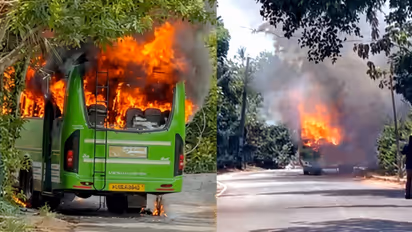 കോഴിക്കോട്: ഓടിക്കൊണ്ടിരിക്കുകയായിരുന്ന സ്വകാര്യ ബസിന് തീപ്പിടിച്ചു. കോഴിക്കോട് മാങ്കാവ് - പന്തീരാങ്കാവ് റൂട്ടില് സര്വീസ് നടത്തുന്ന ബസിലാണ് അപകടമുണ്ടായത്. വാഹനത്തില് നിന്നും പുക ഉയര്ന്ന ഉടന് തന്നെ ജീവനക്കാരും യാത്രക്കാരും പുറത്തേക്ക് ഇറങ്ങിയതിനാല് വലിയ അപകടം ഒഴിവായി. ബസ് പൂര്ണമായും കത്തിനശിച്ച നിലയിലാണ്. കടുപ്പിനി പാലത്തിന് സമീപം ഇന്ന് ഉച്ചയ്ക്ക് 1.45 ഓടെയാണ് സംഭവമുണ്ടായത്. ഡീസലിന് പുറമെ സിഎന്ജി വാതകം കൂടി ഉപയോഗിച്ച് പ്രവര്ത്തിക്കുന്നതായിരുന്നു ബസ്. വാഹനത്തില് ആകെ നാല് സിഎന്ജി സിലിണ്ടര് ഉണ്ടായിരുന്നെങ്കിലും കാലിയായിരുന്നതിനാല് വലിയ അപകടം ഒഴിവാകുകയായിരുന്നു. മീഞ്ചന്തയില് നിന്നും അഗ്നിരക്ഷാ നിലയത്തില് നിന്നും ഉദ്യോഗസ്ഥരെത്തിയാണ് തീ അണച്ചത്. അപകടത്തില് ആര്ക്കും പരിക്കേറ്റിട്ടില്ല.