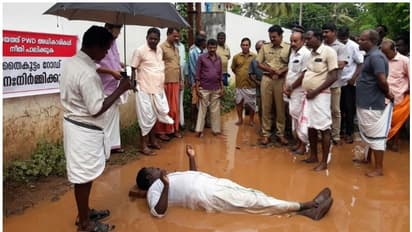 അരൂർ: പല തരം പ്രതിഷേധ സമരങ്ങൾ കണ്ടിട്ടുണ്ട്. എന്നാൽ റോഡിലെ കെട്ടിക്കിടക്കുന്ന വെള്ളത്തിൽ കിടന്ന് പ്രതിഷേധിക്കുന്നത് അപൂർവ്വ സംഭവമാണ്. പഞ്ചായത്തിലെ നിരവധി ആളുകൾ നിത്യേന സഞ്ചരിക്കുന്ന തൈക്കൂടം ഫെറി റോഡിന്റെ ശോചനീയാവസ്ഥ കണ്ടിട്ടും കാണാതെ പോകുന്ന അധികൃതരുടെ അനാസ്ഥയ്ക്കെതിരെയാണ് പരിസരവാസിയായ ഷൈലജൻ കാട്ടിത്തറ പൊട്ടി തകർന്ന റോഡിലെ ചെളിവെള്ളത്തില് കിടന്ന് പ്രതിഷേധിച്ചത്.