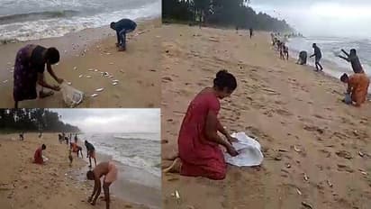 തീരത്തുണ്ടായിരുന്നവര് കയ്യില് കിട്ടിയ ചട്ടിയിലും കലത്തിലും കവറിലുമെല്ലാം മീന് വാരി നിറച്ചു. പറഞ്ഞറിഞ്ഞ് കൂടുതല് ആളുകള് തീരത്തെത്തി. എത്തിയവര്ക്കെല്ലാം കടലിന്റെ സമ്മാനം. ഇത്തരം പ്രതിഭാസം ഇതിന് മുന്പും ഇവിടങ്ങളില് കണ്ടിട്ടുണ്ട്. എന്നാല് ഇത്രയധികം മത്തി കിട്ടുന്നത് ആദ്യമായിട്ടാണെന്ന് പ്രദേശവാസികള് പറയുന്നു.