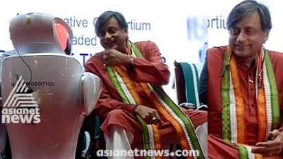 തിരുവനന്തപുരം: റോബോട്ടുകളുമായി സംവദിച്ച് ശശിതരൂര് എം പി. വിദ്യാഭ്യാസ രംഗത്തെ പുതിയ സമീപനങ്ങള് എന്ന വിഷയത്തില് തിരുവനന്തപുരത്ത് നടന്ന സെമിനാറില് പങ്കെടുക്കവെയാണ് തരൂര് റോബോട്ടുകളുമായി സംവദിച്ചത്.
