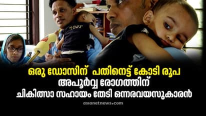 രണ്ട് വയസിന് മുന്പ് മുഹമ്മദിന് സോൾജെൻസ്മാ എന്ന മരുന്ന് ഒരു ഡോസ് നൽകിയാൽ രോഗം ഭേദമാകുമെന്ന് വിദഗ്ധർ പറയുന്നു. പക്ഷെ വിദേശത്ത് നിന്ന് എത്തിക്കേണ്ട മരുന്നിന് വേണ്ടത് പതിനെട്ട് കോടിയാണ്. ഒന്നിച്ച് പതിനെട്ട് രൂപ പോലും കയ്യിലില്ലാത്ത അവസ്ഥയാണ് നിലവിലെന്ന് ഈ കുടുംബം വിശദമാക്കുന്നു. മകനെ ജീവിതത്തിലേക്ക് തിരിച്ച് പിടിക്കാന് സൌമനസുകളുടെ സഹായമാണ് ഈ പിതാവ് അപേക്ഷിക്കുന്നത്.
