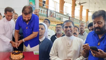 പള്ളി വികാരി ഫാ. റോയ് ജോസഫ് വടക്കന്റെ നേതൃത്വത്തിൽ സ്വീകരണം നൽകി. എല്ലാവരും ഒന്നിച്ച് ഊണ് കഴിക്കും മുമ്പായിരുന്നു കേക്ക് കട്ടിങ്. വിവാഹ വാർഷിക സന്തോഷം പങ്കുവച്ച് ഫാ. വടക്കൻ കേക്ക് ഒരു കഷണം സുരേഷ് ഗോപിക്ക് നൽകി. ഇതോടെ എനിക്ക് ഒരു കേക്ക് വേറെ വേണമെന്നായി സുരേഷ് ഗോപി. ഇത് വല്ലാത്ത കേക്കായി പോയെന്നും ഇല്ലെങ്കിൽ ഞാനെന്റെ ഹൃദയത്തോട് നീതി പുലർത്തില്ലെന്നും പറഞ്ഞു. ഉടനെ മറ്റൊരു കേക്ക് പാർസലാക്കി എത്തിച്ചു കൊടുത്തു. സുരേഷ് ഗോപിയുടെ 35-ാം വിവാഹ വാർഷിക ദിനമാണിന്ന്. ബിജെപി നേതക്കളായ കെകെ അനീഷ് കുമാർ, രഘുനാഥ് സി. മേനോൻ, അഡ്വ. കെ.ആർ. ഹരി എന്നിവർ സുരേഷ് ഗോപിക്കൊപ്പം ഉണ്ടായിരുന്നു.