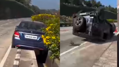 കാറിന്റെ പിൻഭാഗത്ത് ഇടിച്ച് വലതുവശത്തെ ഡിവൈഡറും മറികടന്ന വാഹനം തമിഴ്നാട് ഭാഗത്തേക്കുള്ള റോഡിലാണ് തലകീഴായി മറിഞ്ഞ് കിടന്നത്. ഈ സമയത്ത് ഇതേ ലൈനിൽ വാഹനം കടന്നുപോകാതിരുന്നത് അപകടത്തിന്റെ വ്യാപ്തി കുറച്ചു. കാറിലുണ്ടായിരുന്നവർക്കും ഥാറിന്റെ മുൻ സീറ്റിലുണ്ടായിരുന്ന യുവാവിനും നിസാരപരുക്കുണ്ടെന്ന് നാട്ടുകാർ പറഞ്ഞു. ഇവരെ ആശുപത്രിയിലെത്തിച്ചു. ഥാറിൽ ഒപ്പമുണ്ടായിരുന്ന യുവാക്കൾ അപകടത്തിന് പിന്നാലെ ഓടി രക്ഷപെട്ടെന്നും സംഭവത്തിൽ ദുരൂഹതയുണ്ടെന്നും നാട്ടുകാർ പറയുന്നു.