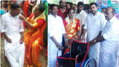 മണവേലി മേക്രക്കാട് ശ്രീ വനദുർഗ്ഗാ ക്ഷേത്രത്തിൽ ഞായറാഴ്ച്ച നടന്ന വിവാഹ ചടങ്ങിൽ വീൽ ചെയർ കൈമാറി. കെ കെ കുമാരൻ പെയിൻ ആന്റ് പാലിയേറ്റീവ് കെയർ സൊസൈറ്റി അധികൃതരുടെ നേതൃത്വത്തിൽ ഭക്ഷ്യസിവിൽ സപ്ലൈസ് വകുപ്പ് മന്ത്രി പി തിലോത്തമൻ വീൽ ചെയർ വധൂവരന്മാരിൽ നിന്നും ഏറ്റു വാങ്ങി.