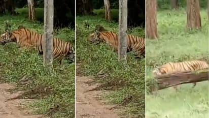 ഇന്ന് വൈകുന്നേരം നാല് മണിയോടെ പുല്പ്പള്ളി സ്വദേശിയാണ് ദൃശ്യം പകര്ത്തിയിരിക്കുന്നത്. കര്ണാടകയിലെ വെള്ളയ്ക്ക് സമീപമുള്ള കാട്ടിലൂടെ കടന്നുപോവുന്ന റോഡില് വാഹനം നിര്ത്തിയവരാണ് വീഡിയോ ഷൂട്ട് ചെയ്ത്. ജീവിതത്തില് ആദ്യമായാണ് കടുവയെ നേരിട്ടുകാണുന്നതെന്ന് യാത്രക്കാര് പറയുന്നത് വീഡിയോയില് കേള്ക്കാം.