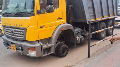തിരുവനന്തപുരം: ഓടിക്കൊണ്ടിരുന്ന ടോറസ് ലോറിയുടെ ടയർ ഊരിത്തെറിച്ച് കടകളിലേക്ക് കയറി അപകടം. കരമന-കളിയിക്കാവിള പാതയില് ഇന്നലെ രാവിലെയായിരുന്നു സംഭവം. ടാർ കയറ്റിവന്ന ലോറിയുടെ മുൻവശത്തെ ടയർ ഊരിത്തെറിച്ച് സമീപത്തെ കടകളിലേക്ക് പാഞ്ഞുകയറിയാണ് അപകടമുണ്ടായത്. കടയിലെ ജീവനക്കാർ അത്ഭുതകരമായി രക്ഷപ്പെട്ടു. തമിഴ്നാട്ടിൽ നിന്ന് ടാർ കയറ്റി പേരൂര്ക്കട വഴയില ഭാഗത്തേക്കു പോവുകയായിരുന്ന ലോറിയുടെ മുന്നിലെ ഇടതുവശത്തെ ടയറാണ് വൻ ശബ്ദത്തോടെ ഊരിത്തെറിച്ച് സമീപത്തെ കടകളിലേക്ക് പാഞ്ഞുകയറിയത്. ആദ്യം ഷോപ്പിലേക്ക് പാഞ്ഞുകയറിയ ടയർ ഉള്ളിൽ തട്ടി വീണ്ടും പുറത്തുവന്ന് സമീപത്തെ കടയിലേക്ക് കയറുകയായിരുന്നു. സമീപത്തെ സ്റ്റുഡിയോയ്ക്കും ഫൈനാൻസ് സ്ഥാപനത്തിനും നാശനഷ്ടമുണ്ടായി. കടകളുടെ മുൻവശത്തെ ഗ്ലാസ് ഡോറുകൾ തകർത്താണ് ടയർ കടകൾക്കുള്ളിലേക്ക് കയറിയത്.