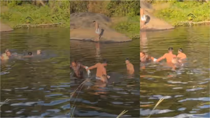 ബഹളം കേട്ട് ഓടിയെത്തിയ പാണ്ടിക്കടവ് സ്വദേശികളായ സി.കെ ഉമ്മര്, സി.കെ ജലീല് എന്നിവരും അവിടെയുണ്ടായിരുന്ന മറ്റൊരു സഞ്ചാരിയും അമാന്തം കാണിക്കാതെ പുഴയിലേക്ക് ചാടി ഇരുവരെയും മുങ്ങിപോകാതെ പിടിച്ചു നിര്ത്തി. പിന്നീട് കരക്ക് നിന്നവര് ഇട്ടുനല്കി തുണിയില് പിടിച്ച് രണ്ടുപേരെയും കരക്കെത്തിക്കുകയായിരുന്നു. നല്ല ആഴമേറിയ ഭാഗമാണ് ഇതെന്നും നിമിഷങ്ങള് വൈകിയിരുന്നെങ്കില് ഇരുവരുടെയും ജീവന് തന്നെ നഷ്ടപ്പെടുമായിരുന്നുവെന്നും നാട്ടുകാര് പറഞ്ഞു. അപകടത്തില്പ്പെട്ട വനിത നെതര്ലാന്ഡ് സ്വദേശിനിയാണെന്നാണ് സൂചന. അവധി ദിനമായതിനാല് കുടുംബത്തോടൊപ്പം കറങ്ങാനിറങ്ങിയതായിരുന്നു ഉമ്മറും ജലീലും. അതിനിടയിലായിരുന്നു അപകടം ശ്രദ്ധയില്പ്പെട്ടത്. സ്വജീവന് പണയപ്പെടുത്തി വിദേശസഞ്ചാരികളെ രക്ഷിച്ച മൂന്ന് പേരെയും നാട്ടുകാര് അഭിനന്ദിച്ചു.