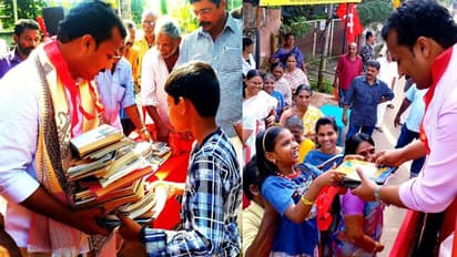 വട്ടിയൂര്ക്കാവ്: പൂച്ചെണ്ടിനും പൊന്നാടയ്ക്കും പകരം പുസ്തകം വാങ്ങാനിറങ്ങിയ വി കെ പ്രശാന്ത് എംഎൽഎയുടെ പരിപാടി വമ്പൻ ഹിറ്റ്. മൂന്നു ദിവസത്തെ സ്വീകരണ യോഗങ്ങളിലായി മൂവായിരത്തിലേറെ പുസ്തകങ്ങളാണ് പ്രശാന്തിന്റെ നേതൃത്വത്തിൽ സമാഹരിച്ചത്. ഒരു പൂവ് ചോദിച്ചപ്പോൾ പൂക്കാലം കിട്ടിയെന്ന് പറഞ്ഞതു പോലെ തന്നെയായി കാര്യങ്ങളെന്നാണ് പ്രശാന്ത് എംഎല്എ പറയുന്നത്.