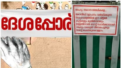 ആലപ്പുഴ: തദ്ദേശതെരഞ്ഞെടുപ്പില് വോട്ട് ചോദിച്ച് വീട്ടിലേക്കെത്തുന്നവര്ക്ക് അറിയിപ്പുമായി ആലപ്പുഴയിലെ ഈ വോട്ടര്. നഗരസഭയിലേക്ക് ഏറ്റവും കൂടുതല് ആളുകള് മത്സരരംഗത്തുള്ള സക്കറിയാ വാര്ഡിലെ ബംഗ്ലാവ് പറമ്പില് നാസര് കാസിമാണ് ഇത്തരമൊരു അറിയിപ്പിന് പിന്നില്. ബഹുമാനപ്പെട്ട സ്ഥാനാര്ത്ഥികളേ കൊവിഡ് വര്ധിക്കുന്ന സാഹചര്യത്തില് ഈ വീട്ടില് കുട്ടികളും മുതിര്ന്നവരും ഉള്ളതിനാല് വോട്ട് ചോദിക്കാനായി ആരും വരരുത്. വിവേകപൂര്വ്വം വോട്ട് ചെയ്തോളാം.