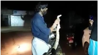 ജനുവരി 29ന് നടന്ന സംഭവത്തിന്റെ നാട്ടുകാർ പകർത്തിയ ദൃശ്യങ്ങൾ ഇപ്പോഴാണ് പുറത്ത് വന്നത്. സംഭവത്തില് വനം വകുപ്പ് അന്വേഷണം തുടങ്ങി. ജിത്തുവിന്റെ മൊഴി രേഖപ്പെടുത്തി. ആവശ്യമെങ്കില് സംഭവത്തില് കേസെടുക്കുമെന്ന് ഉദ്യോഗസ്ഥർ അറിയിച്ചു. യുവാവിന് പാമ്പ് പിടുത്തത്തില് വൈദഗ്ധ്യമില്ലെന്നും മദ്യലഹരിയിലാണ് പാമ്പുമായി യാത്ര ചെയ്തതെന്നും വനംവകുപ്പിന്റെ അന്വേഷണത്തില് വ്യക്തമായി. പാമ്പിനെ പിടികൂടി അന്ന് രാത്രി തന്നെ ജിത്തു പൊലീസ് സ്റ്റേഷനില് എത്തിച്ചിരുന്നു. പൊലീസ് പാമ്പിനെ വനംവകുപ്പിന് കൈമാറി. നിരീക്ഷണത്തിന് ശേഷം ജനുവരി ആറിന് തന്നെ പാമ്പിനെ കാട്ടില് തുറന്നു വിടുകയും ചെയ്തിരുന്നു.
