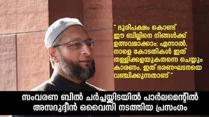 ഒവൈസി : ഇനി പറയാന് പോവുന്ന കാരണങ്ങളാല് ഞാനീ ബില്ലിനെ ശക്തിയുക്തം എതിര്ക്കുകയാണ്.