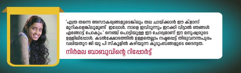 'എത്ര തന്നെ അസൗകര്യങ്ങളുടെങ്കിലും തല ചായ്ക്കാന് ഈ ക്ലാസ് മുറികളെങ്കിലുമുണ്ട് ഇപ്പോള്. നാളെ ഇവിടുന്നും ഇറക്കി വിട്ടാല് ഞങ്ങള് എങ്ങോട്ട് പോകും.' നെഞ്ച് പൊട്ടിയുള്ള ഈ ചോദ്യമാണ് ഈ മനുഷ്യരുടെ ഉള്ളിലിപ്പോള്.