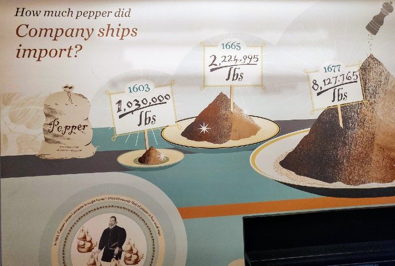 1600 -ല് ഒന്നാം എലിസബത്ത് രാജ്ഞി ലണ്ടനിലെ ഒരു കൂട്ടം വ്യാപാരികള്ക്ക് ഇന്ത്യയിലും ഇന്തോനേഷ്യയിലും നിന്ന് കുരുമുളകും സുഗന്ധവ്യഞ്ജനങ്ങളും വാങ്ങി വ്യാപാരം നടത്താന് അനുമതി കൊടുക്കുകയും അതിനായി ഒരു ചെറിയ കമ്പനി 'ദി ഗവര്ണര് ആന്ഡ് കമ്പനി ഓഫ് മര്ച്ചന്റ്സ് ഓഫ് ലണ്ടന് ട്രേഡിങ്ങ് ഇന്ടു ദി ഈസ്റ്റ് ഇന്ഡീസ്' എന്ന പേരില് ആരംഭിക്കുകയും ചെയ്തു. അതിന്റെ വിവരണത്തിന് അടിയില് ഇങ്ങനെ കുറിച്ചിരിക്കുന്നു. 'ചെറുകൂട്ടം വ്യാപാരികളുടെ ഈ സംരംഭം ലോകക്രമത്തെ മാറ്റിമറിച്ചൊരു കമ്പനിക്ക് അടിത്തറയിട്ടു.'