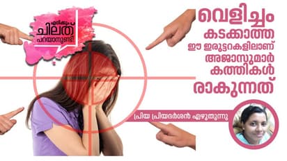 'ആണ്' എന്നും 'പെണ്ണ്' എന്നുമുള്ള നിര്വ്വചനങ്ങള് തന്നെ എത്രത്തോളം അപകടം പിടിച്ചവയാണ്. ചെറുപ്രായം മുതല്ക്കു തന്നെ ആണായിരിക്കല് എന്നത് അധികാരങ്ങളുടെ, അവകാശങ്ങളുടെ, സ്വന്തമാക്കലുകളുടെ, പകവീട്ടലുകളുടെ ആകെത്തുകയെങ്കില് പെണ്ണായിരിക്കല് സഹനമാണ്, പ്രതികരിക്കാതിരിക്കലാണ്, ഭയക്കലാണ്, ഒളിക്കലാണ്, അവളവളേ ആകാതിരിക്കലാണ്. അമ്മ, പെങ്ങള്, പെണ്സുഹൃത്തുക്കള്, കാമുകിമാര് ഇവരില് ഉടമസ്ഥതയോടെ വെട്ടിപ്പഠിച്ചവരാണ് വിവാഹത്തോടെ സ്വന്തമാക്കുന്നവളെ മെരുക്കാനുതകുന്ന ആണ്. വെളിച്ചം കടക്കാത്ത ഈ ഇരുട്ടറകളിലാണ് അജാസുമാര് കത്തികള് രാകുന്നത്.