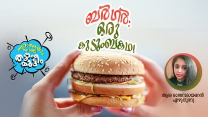 ''അമ്മയ്ക്ക് അറിയില്ലേ, ബര്ഗര് വലിയ സംഭവമാണ്. ഇംഗ്ലീഷുകാര് കഴിക്കുന്ന സൂപ്പര് സാധനമാണ്. പിന്നെ രുചിയെക്കുറിച്ച് പറയേണ്ട, കിടു! നമ്മുടെ നാട്ടില് ഇനി അമ്മയും ഞാനും മാത്രമേ ഇത് കഴിക്കാത്തതായി ഉണ്ടാവൂ...'