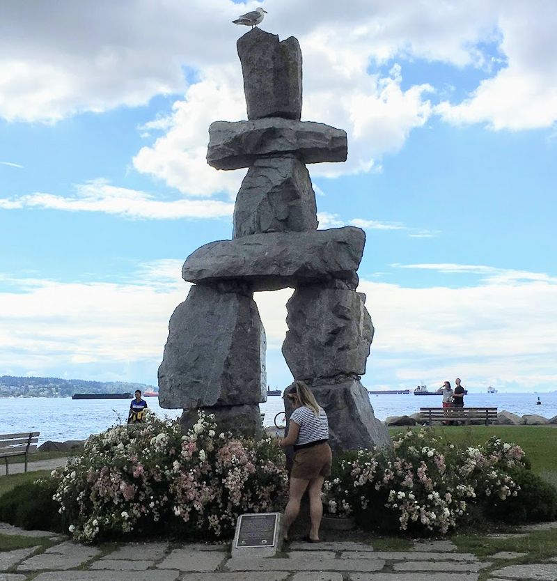 ഇനുക്ഷക്ക് (Inukshuk) എന്ന് പേരുള്ള ഒരു ശില്പം ബീച്ചിൽ ഒരു ഭാഗത്ത് കാണാം ഇത് ഇനു (Inuit) എന്ന ആദിമ ഗോത്രക്കാർ സൗഹൃദത്തിനെയും ആതിഥ്യമര്യദയെയും പ്രതീകവൽക്കരിച്ചു കൊണ്ട് എക്സ് പോ 86 ഇവിടെ നടന്നപ്പോൾ നിർമ്മിച്ചു നൽകിയതാണ്. അമേസിങ്ങ് ലാഫ്റ്റർ (A-Mazing Laughter)എന്ന പേരിലുള്ള ഒരു കലാശില്പം ഇവിടെ ഇംഗ്ലീഷ് ബേ കടൽത്തീരത്തിന് അടുത്തായി കാണാം. യൂമിൻ ജുൻ എന്ന ചൈനീസ് കലാകാരൻ സ്വന്തം മുഖം മാതൃകയായി ഉപയോഗിച്ച്, കണ്ണടച്ചു കൊണ്ട് പൊട്ടിച്ചിരിക്കുന്ന കുറേ മനുഷ്യരുടെ ഒരു കൂട്ടം സൃഷ്ടിച്ചിരിയ്ക്കുകയാണിവിടെ. യഥാർത്ഥ്യത്തിന് നേരെ കണ്ണടച്ചു കൊണ്ട് പുറം കാഴ്ചകളിൽ അഭിരമിച്ച് നടയ്ക്കുന്ന മനഷ്യരെ കണ്ട് ചിരിയ്ക്കുകയാണ് അവർ.