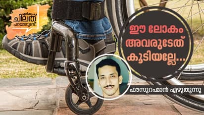 മുകളിൽ പറഞ്ഞതൊക്കെ ഒരു ദിവാസ്വപ്നമാണെന്ന് കരുതരുത്. ലോകത്ത് പല രാജ്യങ്ങളിലും ഭിന്നശേഷിക്കാർക്ക് വന്ന മാറ്റങ്ങളാണ് ഇവയൊക്കെ. നമ്മുടെ രാജ്യത്ത് ഭിന്നശേഷിക്കാരുടെ അവകാശങ്ങളും അർഹതകളും ഉറപ്പിക്കുന്ന പരിഷ്കരിച്ച ബില്ല് പാസാക്കിയിട്ട് രണ്ട് വർഷത്തോളമായിട്ടും എത്ര പൊതുവിടങ്ങളാണ് അവർക്ക് കേറിച്ചെല്ലാൻ പാകത്തിൽ മാറ്റം ഉൾകൊണ്ടത്. സർക്കാർ ഓഫീസുകൾ, വിനോദ സഞ്ചാര കേന്ദ്ര ങ്ങൾ, പൊതു ഗതാഗതം തുടങ്ങി ഒരിടത്തും കാര്യമായ മാറ്റങ്ങൾ ഉണ്ടായിട്ടില്ല. നമ്മുടെ നാട്ടിലെ ലോഫ്ലോർ ബസ്സിൽ മാത്രമാണ് റാമ്പ് ഉള്ളത്, അതിൽ വീൽചെയറുകൾ കേറ്റാനും ലോക്ക് ചെയ്ത് യാത്ര ചെയ്യാനുള്ള സ്പെയ്സും ഉണ്ടായിരുന്നു. എന്നാൽ നഷ്ടത്തിലായ ksrtc -യെ രക്ഷിക്കാൻ ആ സ്ഥലം കൂടി സീറ്റുകൾ പിടിപ്പിക്കുകയാണുണ്ടായത്.